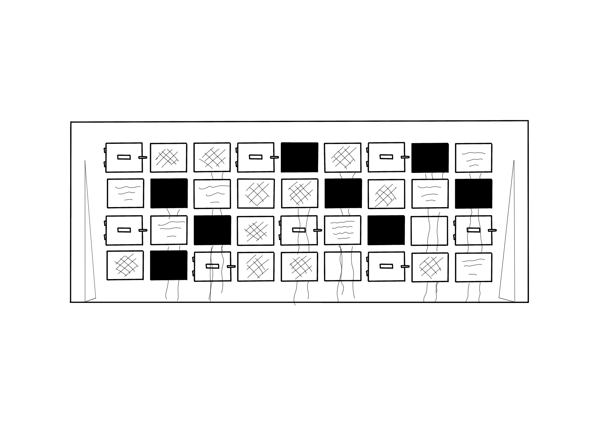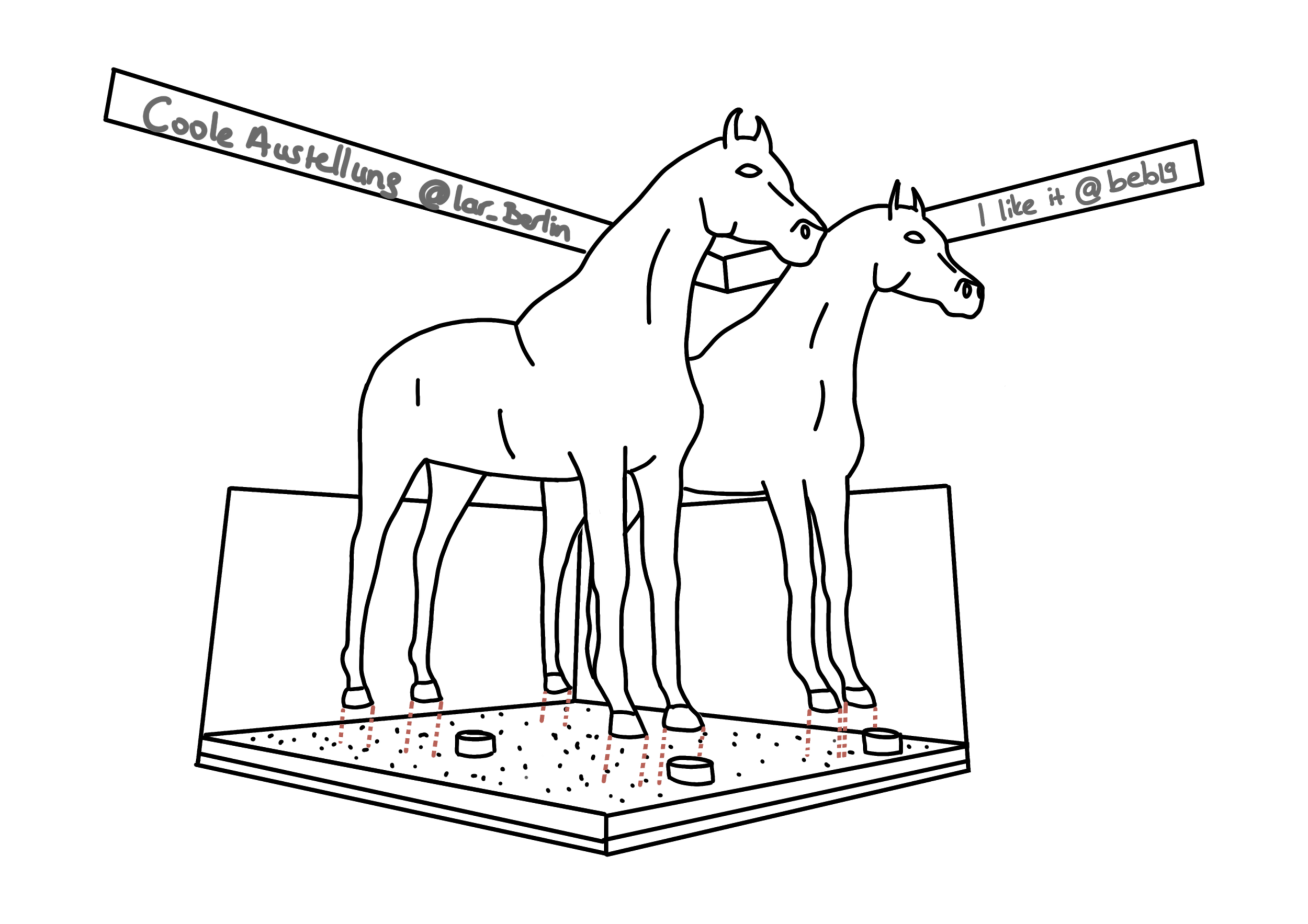 We are in a transitory moment: The horses are in perpetual suspension above their final resting place, with only their feet reaching the pit in the ground. Once they are in the pit, the tomb could be closed. But this resting place is difficult to build and maintain. The space we are in gives the moment to discuss and find out if such a resting place exists and if so, under what conditions.